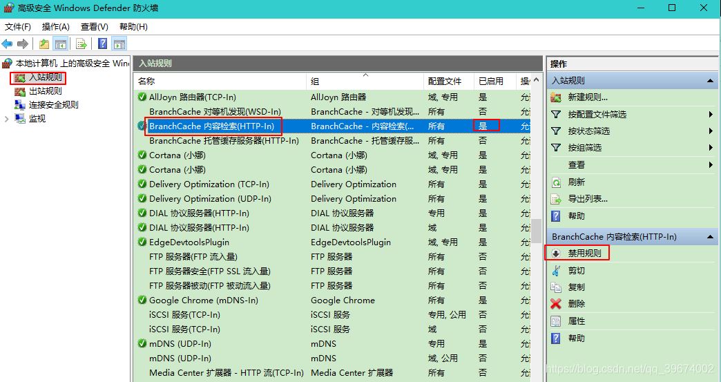 選中高級設置啟動入站規則當中的內容檢索(http-in)