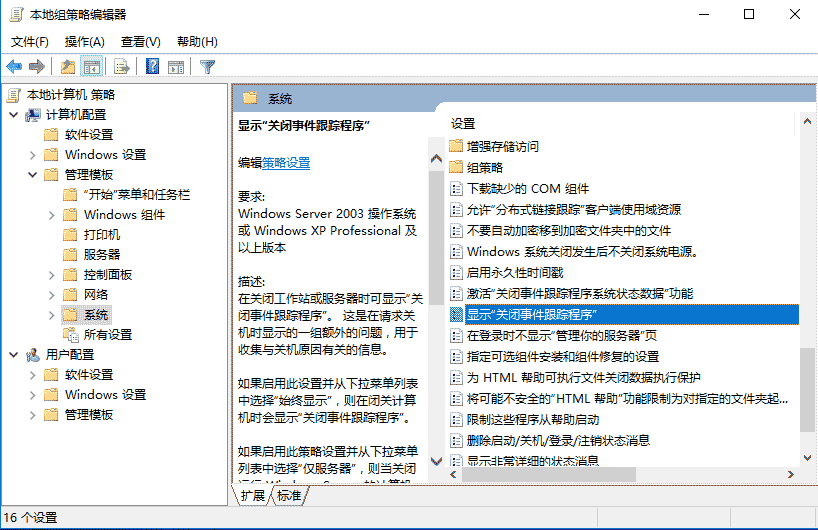 4、計算機配置 - 管理模板 - 系統,顯示”關閉事件跟蹤程序”,設置為”已禁用”。