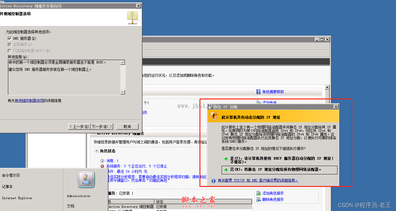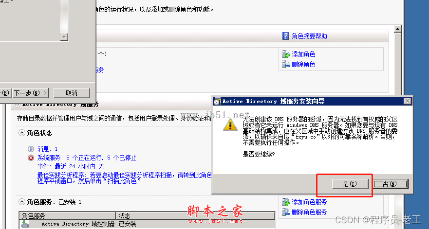 添加域服務,域服務高度依賴DNS也會一并安裝