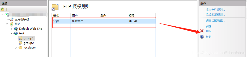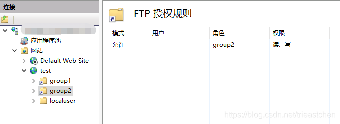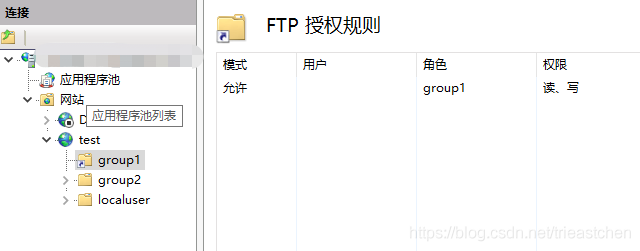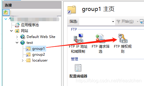 雙擊group1文件夾,然后雙擊右側“FTP授權規則”,
