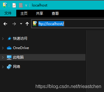 打開任意文件夾,在地址欄輸入:ftp://<服務器ip>,如本機使用服務器ip為localhost,輸入后回車