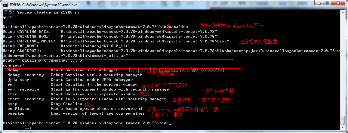 其它文件configtest.bat、version.bat、startup.bat、shutdown.bat就是catalina.bat 拆分的功能