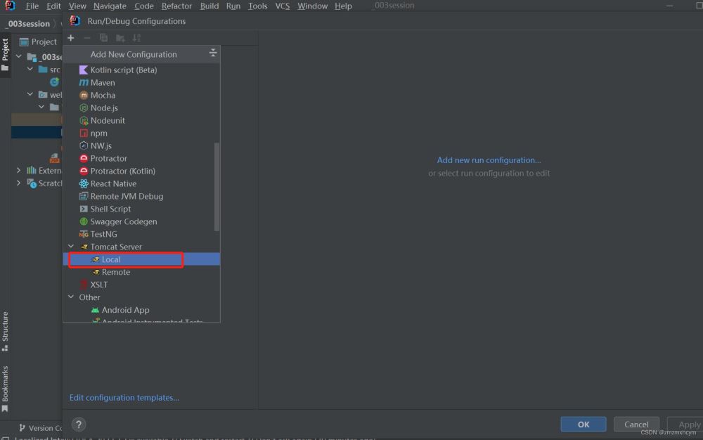 6.配置tomcat Run-> Edit Configurations...-> "+"-> tomcat local 選擇路徑->處理warning-> 修改圖示的選項