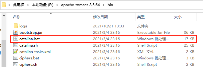 先找到Tomcat下bin路徑下的catalina.bat文件