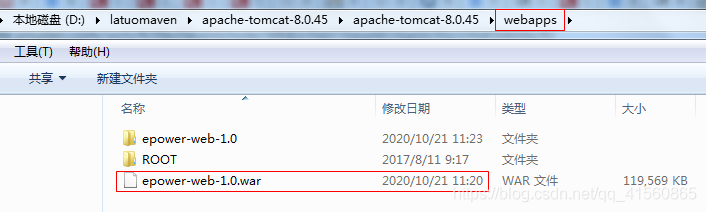 例如本次端口號為:8080,war包名稱為:epower-web-1.0.war,