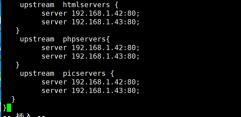 upstream htmlservers { server 192.168.1.42:80; server 192.168.1.43:80; } upstream phpservers{ server 192.168.1.42:80; server 192.168.1.43:80; } upstream picservers { server 192.168.1.42:80; server 192.168.1.43:80; }配置文件是否有錯(cuò)誤