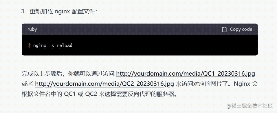 接著 ChatGPT 就給出了 nginx 的配置