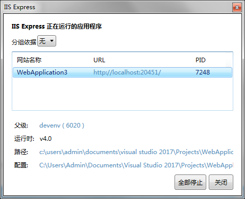 新版本的VS的IIS Express路徑好像有變化,但通過(guò)IIS Express的管理器依然可以很容易找到