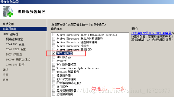 6. 服務(wù)器角色界面,勾選DHCP服務(wù)器;