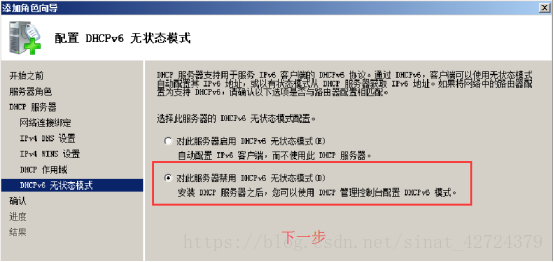 12. DHCPv6無狀態(tài)模式,選擇禁用模式;在Windows Server 2008中默認(rèn)增加了對(duì)下一代IP地址規(guī)范IPv6的支持,不過就目前的網(wǎng)絡(luò)現(xiàn)狀來說很少用到IPv6,因此可以選擇對(duì)此服務(wù)器禁用DHCPv6無狀態(tài)模式。