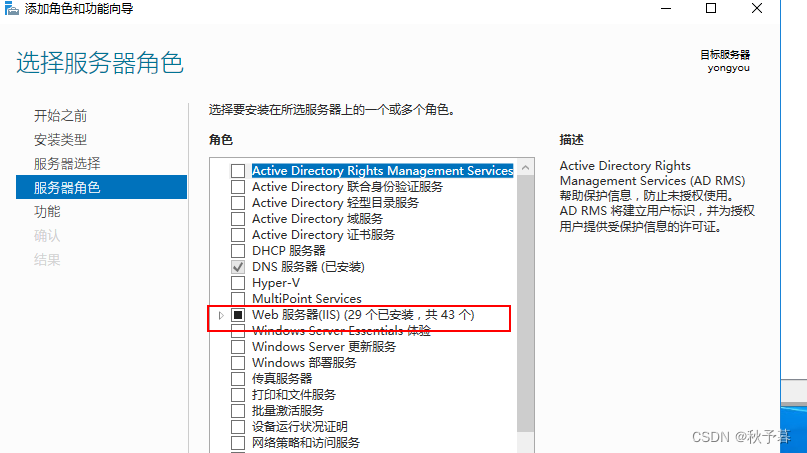 2)勾選“Web服務(wù)器(IIS)”,按照提示完成安裝