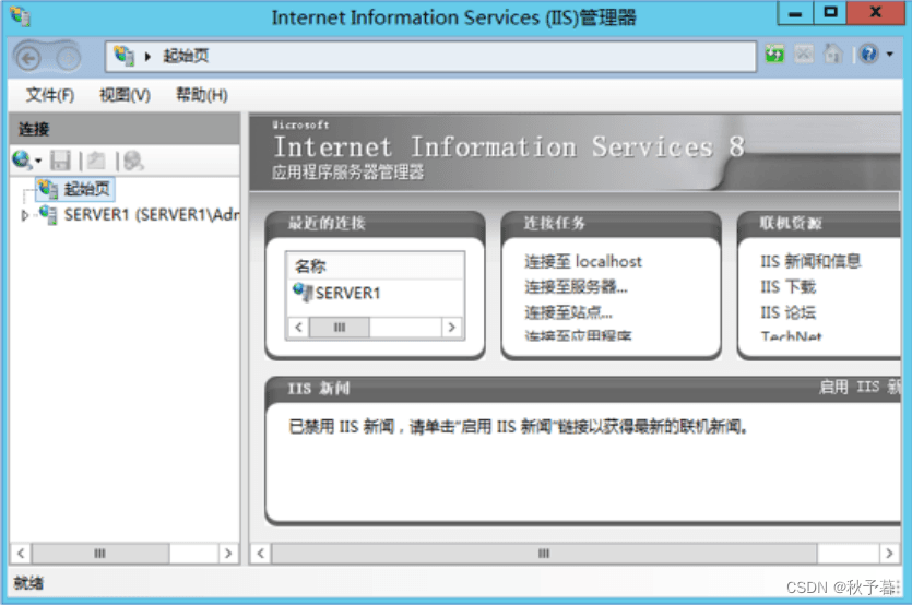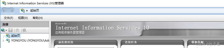 成功安裝“Web服務(wù)器(IIS)”角色后,在服務(wù)器管理器左側(cè)會(huì)多出一欄“IIS”,或者也可以Win+R執(zhí)行inetmgr快速調(diào)出IIS管理器