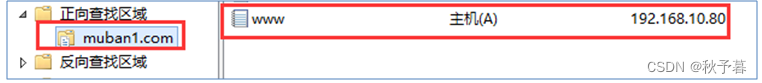 1)添加正向查找區(qū)域www.muban1.com 192.168.10.80