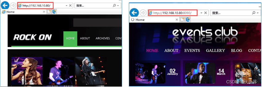 在IIS服務(wù)器上建立兩個(gè)虛擬Web主機(jī):muban1–> 物理路徑D:\muban1(配置默認(rèn)80端口)muban2–> 物理路徑D:\muban2(配置8090端口)從瀏覽器訪問這兩個(gè)網(wǎng)站:http://192.168.10.80/http://192.168.10.80:8090