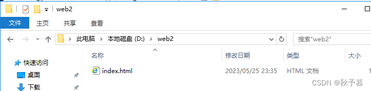 2)D盤web2目中添加網(wǎng)頁文件,網(wǎng)頁內(nèi)容“web2”,文件名為index.html