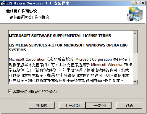 2. 下載IIS Media Services 4.1,并安裝IIS Media Services 4.1(服務(wù)器上)