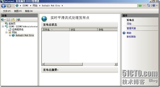 2、在右側(cè)的“操作”面板中 發(fā)布點(diǎn) 下,點(diǎn)擊 添加 。