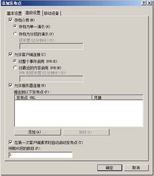 “拉”選項(xiàng)是從另一個(gè)Live Smooth Streaming服務(wù)器獲取節(jié)目源內(nèi)容,這樣可以做到多服器分布負(fù)載,形成服務(wù)群集。