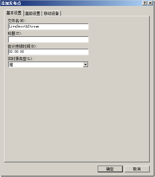 文件名:為L(zhǎng)ive Smooth Streaming發(fā)布點(diǎn)的定義文件輸入一個(gè)名稱