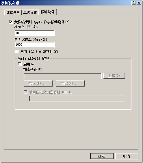 5、如果想讓LiveSmoothStream 支持Apple的移動(dòng)數(shù)字設(shè)備播放實(shí)時(shí)視頻廣播,可以在 移動(dòng)設(shè)備 選項(xiàng)卡上,選擇“允許輸出到Apple數(shù)字移動(dòng)設(shè)備(E)”選擇框。