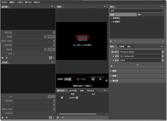 2、 打開Expression Enconder 4.0工作窗口,首先點(diǎn)擊中間預(yù)覽部分的 添加實(shí)時(shí)源