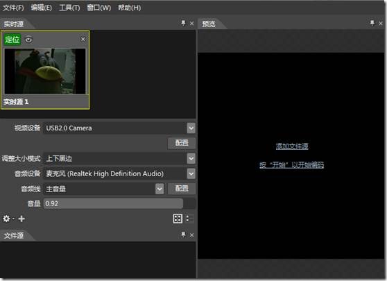 在左側(cè)的實(shí)時(shí)源窗格中選擇實(shí)時(shí)源的視頻設(shè)備以及音頻設(shè)備