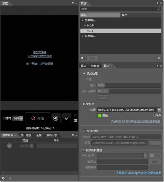 此處是等待從Expression Encoder Pro編輯器中發(fā)來的直播平滑流式媒體數(shù)據(jù)。