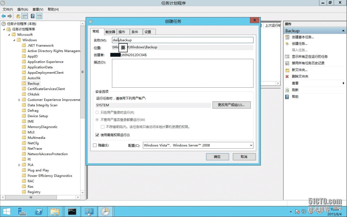 11、打開任務計劃,導入剛才導出的任務。(我這里是dailybacup,weekbackup)