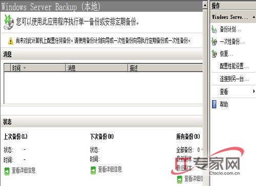 4、創建一個備份計劃了解了有關Windows Server Backup的注意事項,并做了充分的考慮和準備工作,下面我們就進行實戰操作,創建一個備份計劃以實現備份的自動化。