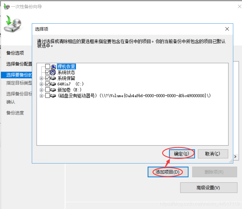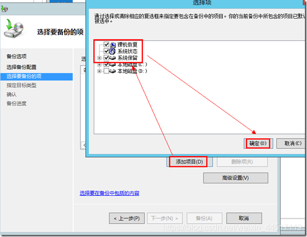 2.選擇“裸機(jī)恢復(fù)”,將備份系統(tǒng)狀態(tài)、系統(tǒng)保留和系統(tǒng)分區(qū)。