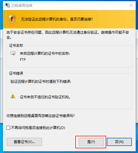 (4)彈出證書告警提示框,忽視,點擊【是】。