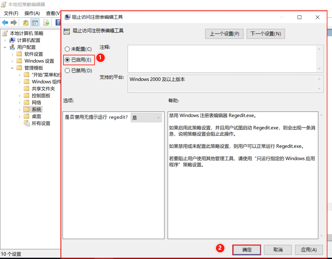 (1)禁止本機用戶編輯注冊表。