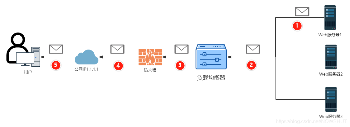 當(dāng)驗(yàn)證成功后,Web服務(wù)器1會(huì)發(fā)送一個(gè)響應(yīng)數(shù)據(jù)包返回給負(fù)載均衡器,負(fù)載均衡器會(huì)將收到數(shù)據(jù)包中的源地址由192.168.82.223改為1.1.1.1,再把響應(yīng)數(shù)據(jù)包發(fā)送給玩家。
