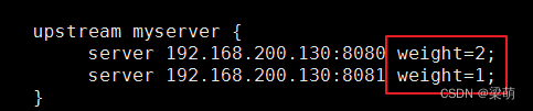 第二種 weight weight代表權重默認為1,權重越高被分配的客戶端越多。