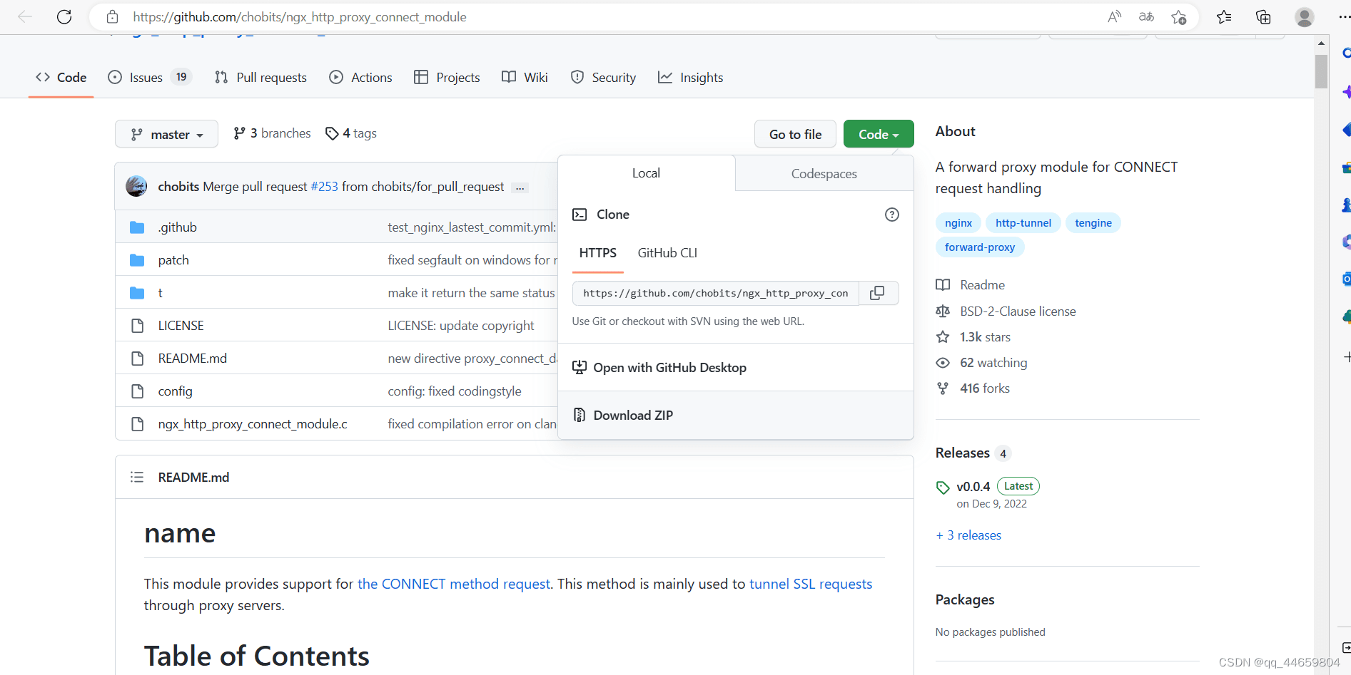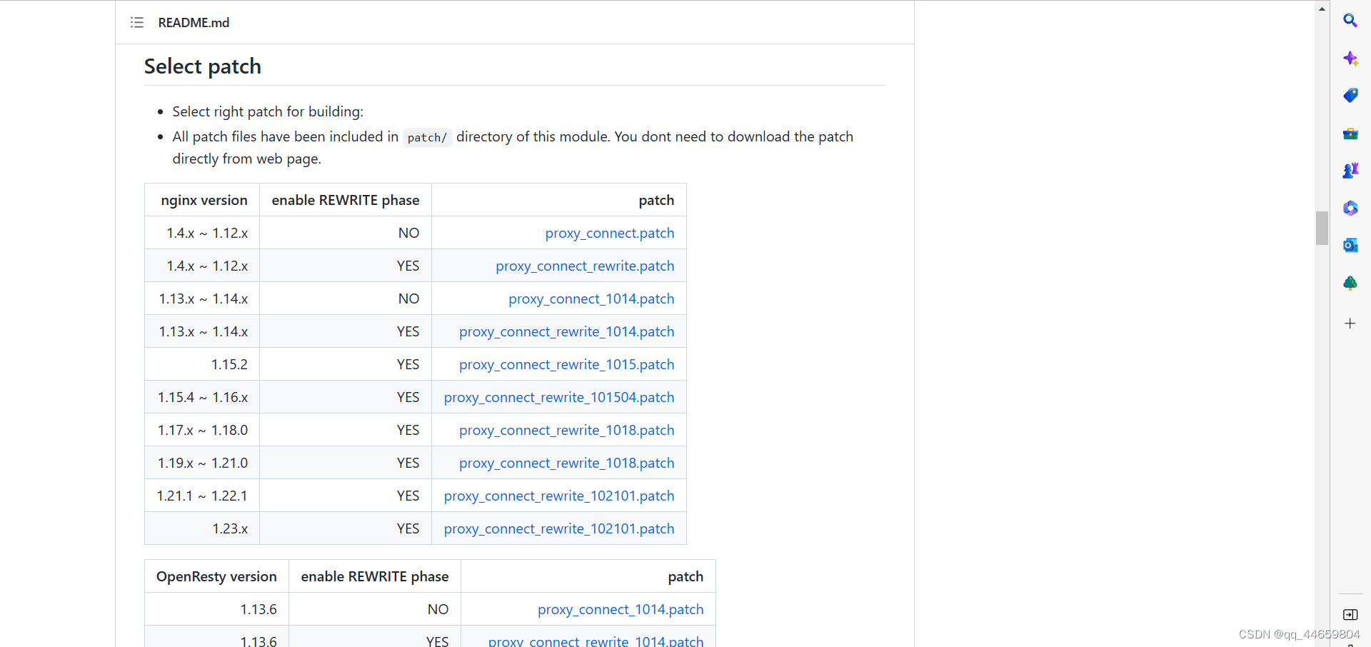 正向代理,指的是通過代理服務器 代理瀏覽器/客戶端去重定向請求訪問到目標服務器 的一種代理服務。正向代理服務的特點是代理服務器 代理的對象是瀏覽器/客戶端,也就是對于目標服務器 來說瀏覽器/客戶端是隱藏的。nginx默認支持正向代理http,不支持httpsnginx官方并不支持直接轉發https請求,nginx支持https需要ngx_http_proxy_connect_module模塊。github上開源了模塊 https://github.com/chobits/ngx_http_proxy_connect_module。不過維護的ngx_http_proxy_connect_module模塊的補丁也是有nginx版本限制的,需根據自身使用的nginx版本選擇相應的正向代理模塊??梢栽赗EDEME.md的Select patch中查看nginx版本和模塊的對應關系安裝包準備下載nginx安裝包下載地址