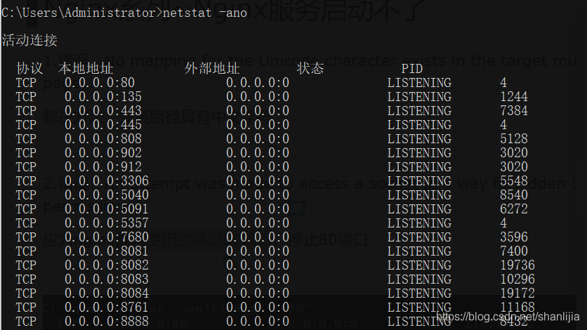 到此這篇關于Nginx啟動不了原因解決(端口占用)的文章就介紹到這了,更多相關Nginx啟動不了內容請搜索好吧啦網以前的文章或繼續瀏覽下面的相關文章希望大家以后多多支持好吧啦網!