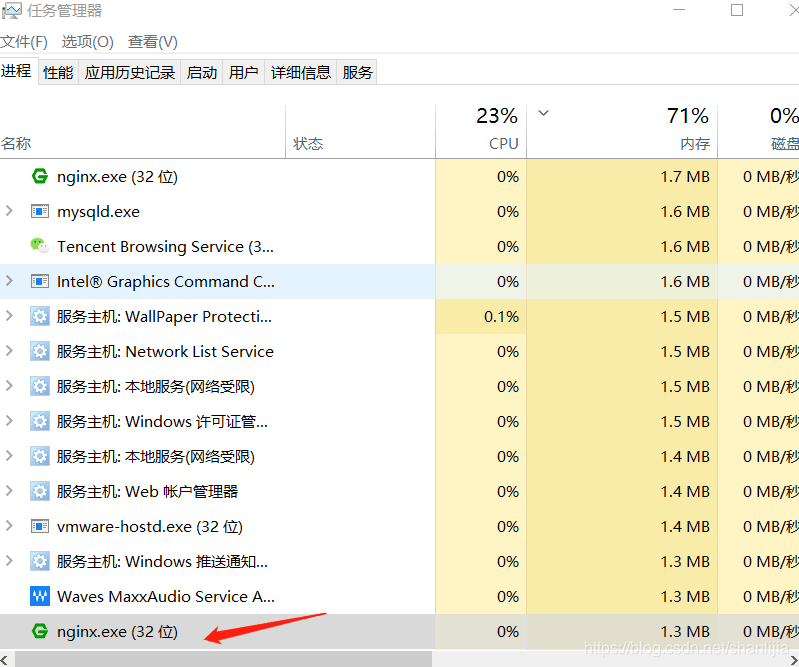 點擊nginx.exe,未在任務管理器中找到,不能成功啟動