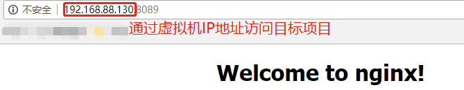 server { listen 8089; #修改為虛擬機(jī)的IP地址 server_name 192.168.88.130; location / {root html;index index.html index.htm; }}通過IP地址訪問目標(biāo)項(xiàng)目測試如下: