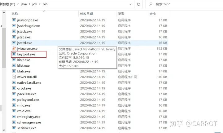 首先進入jdk的bin目錄,找到keytool)命令。