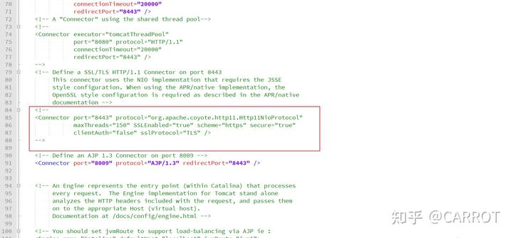 將注釋去掉后,改成如下信息。其中keystorePass是你剛才設置密鑰口令。keystoreFile是剛才生成的證書文件的路徑。