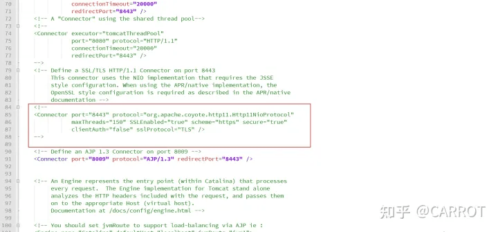 接下來就是修改tomcat的配置文件。找到tomcat的/conf/server.xml,找到如下位置。