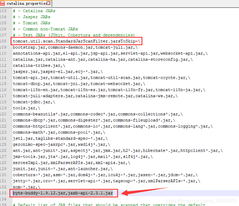 tomcat.util.scan.StandardJarScanFilter.jarsToSkip節點增加 byte-buddy-1.9.12.jar,jaxb-api-2.3.1.jar