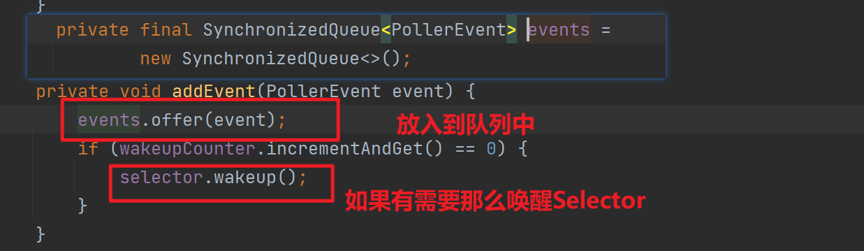 最終請(qǐng)求被包裝為PollerEvent丟到Poller的事件隊(duì)列SynchronizedQueue中,SynchronizedQueue使用synchronized保證線程安全。