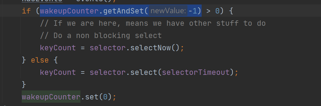 可以看到,如果wakeupCounter大于0,Poller會(huì)調(diào)用 selector.selectNow()(非阻塞立馬返回),反之調(diào)用selector.select(selectorTimeout)(超時(shí)并阻塞)。