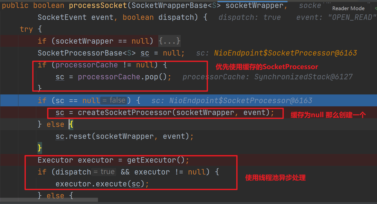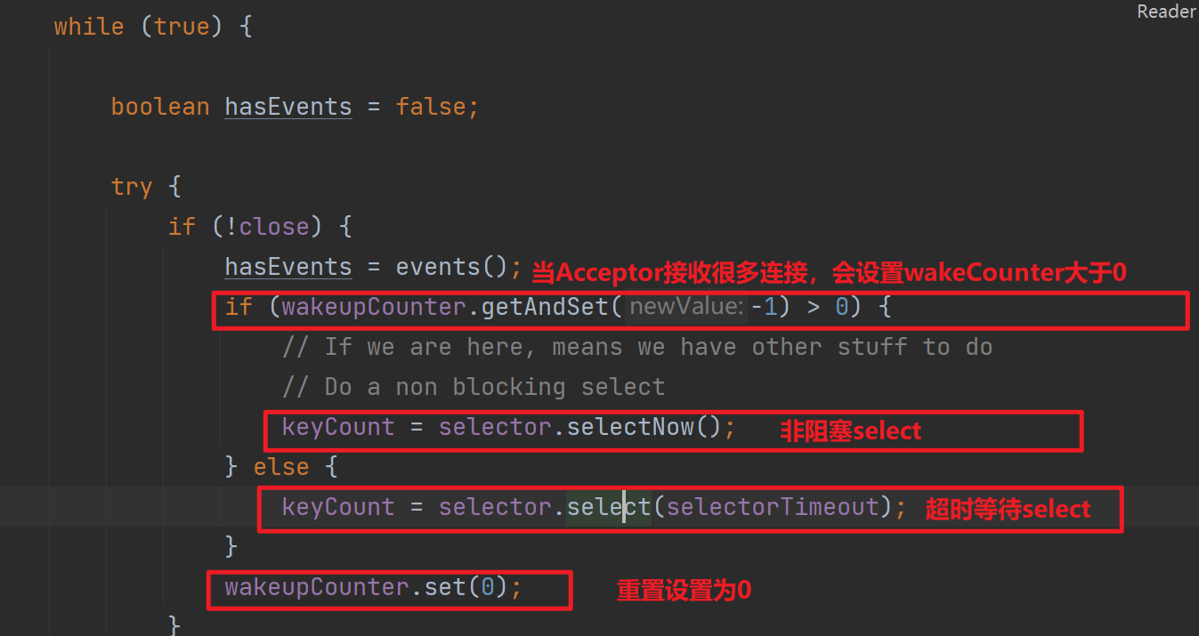 也就說(shuō)Acceptor接受到請(qǐng)求越多,wakeupCounter越大,越會(huì)讓Poller調(diào)用selector.selectNow()減少阻塞,從而讓Poller更快的檢查事件是否就緒,從而讓請(qǐng)求更及時(shí)的被處理。