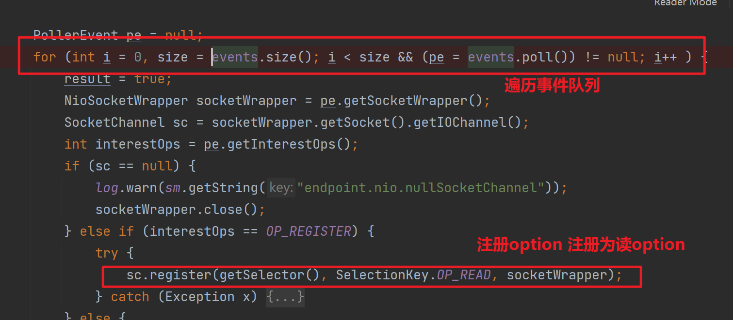 五丶Poller處理事件1.events方法查看事件隊(duì)列是否具備事件上面我們說(shuō)到Acceptor在建立連接后,將SocketChannel包裝成NioSocketWrapper塞到了Poller的事件隊(duì)列中。而Poller線程則會(huì)一直輪詢這個(gè)隊(duì)列進(jìn)行事件的獲取