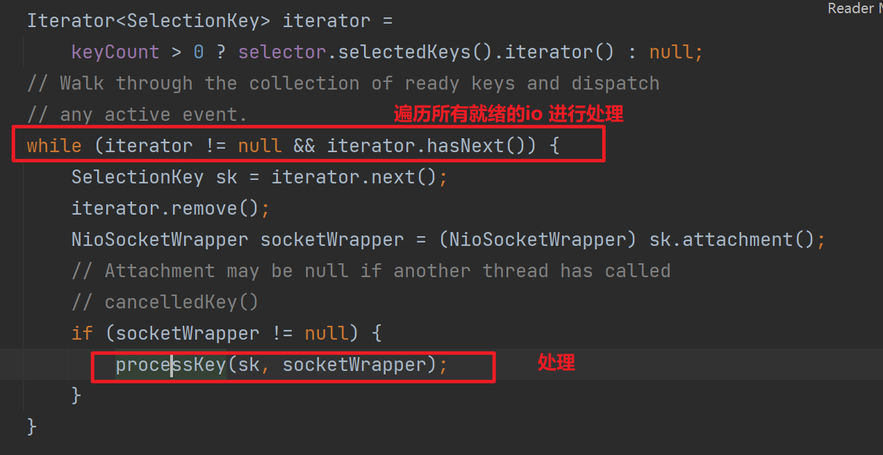 通過Selector獲取獲取當(dāng)前就緒的IO,keyCount記錄就緒數(shù)目。