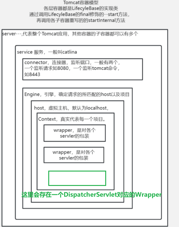 下圖是的模型,如果使用了SpringMVC,這里的Wrapper會(huì)存在DispatchServlet