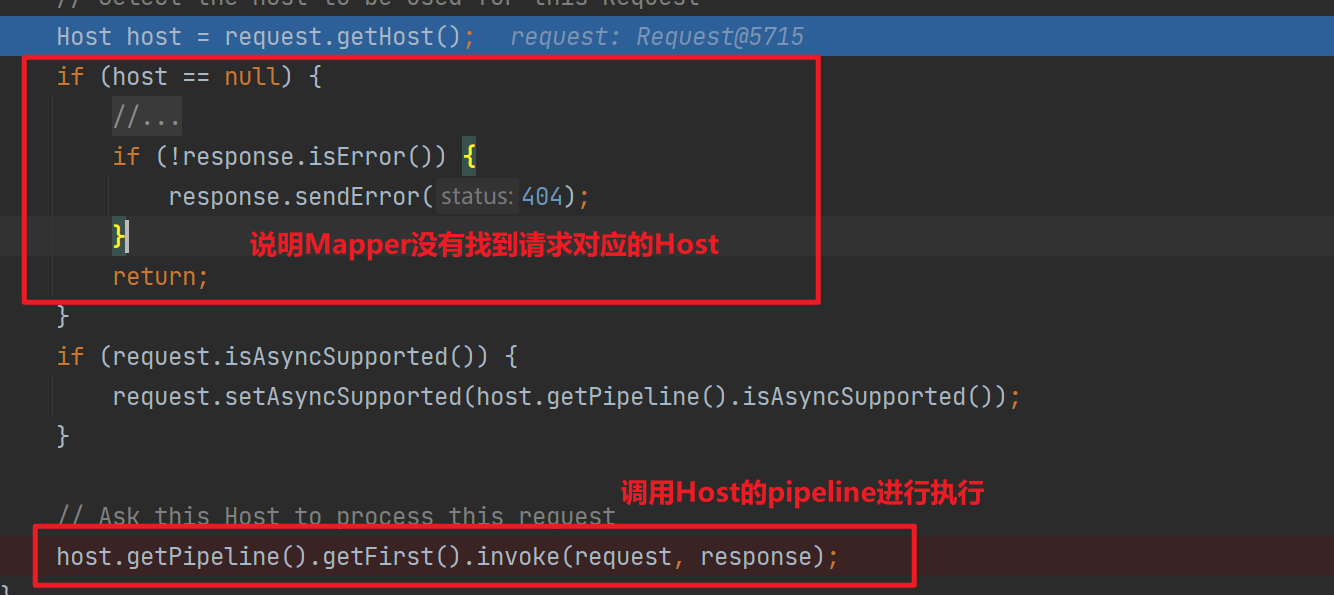 上面說(shuō)到,Mapper會(huì)找到當(dāng)前請(qǐng)求所屬的host,context和對(duì)應(yīng)的Wrapper,緊接著會(huì)進(jìn)行Pipeline的執(zhí)行。