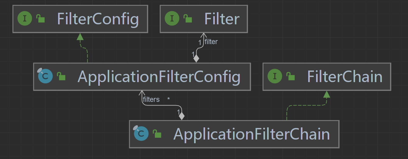 其中使用ApplicationFilterConfig是對(duì)FilterConfig的實(shí)現(xiàn),內(nèi)部持有一個(gè)Filter。
